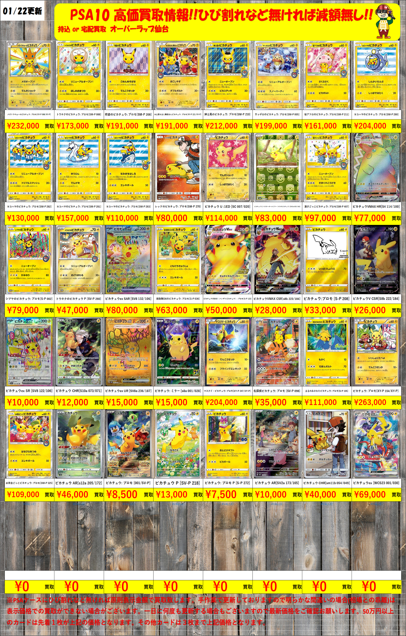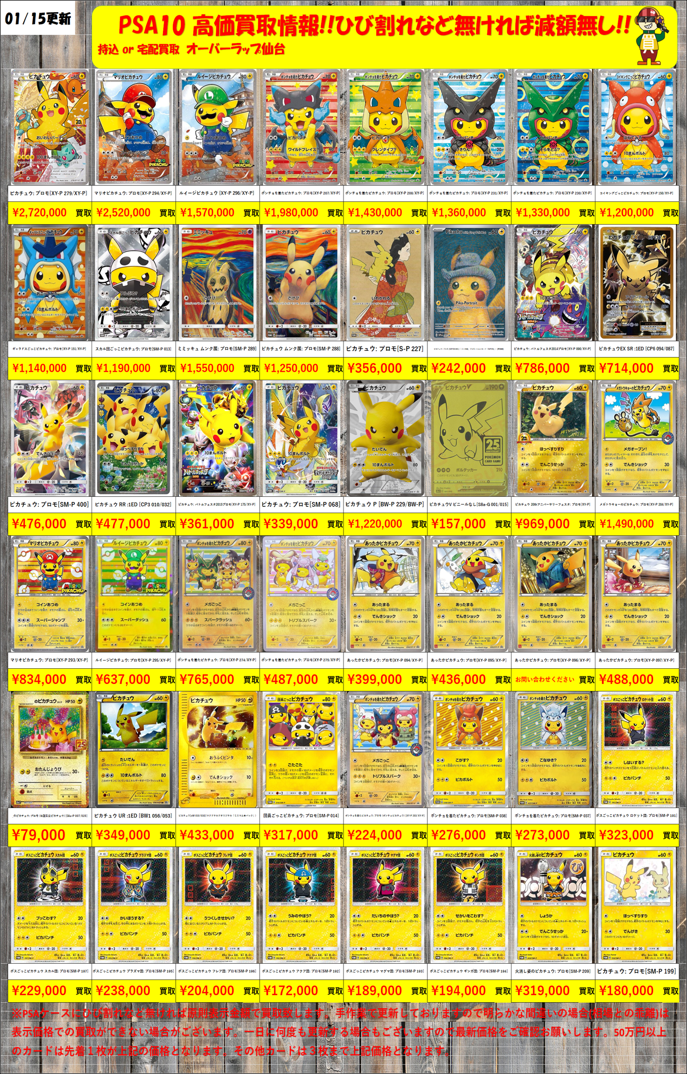 【PSA10】 ピカチュウ 買取価格表