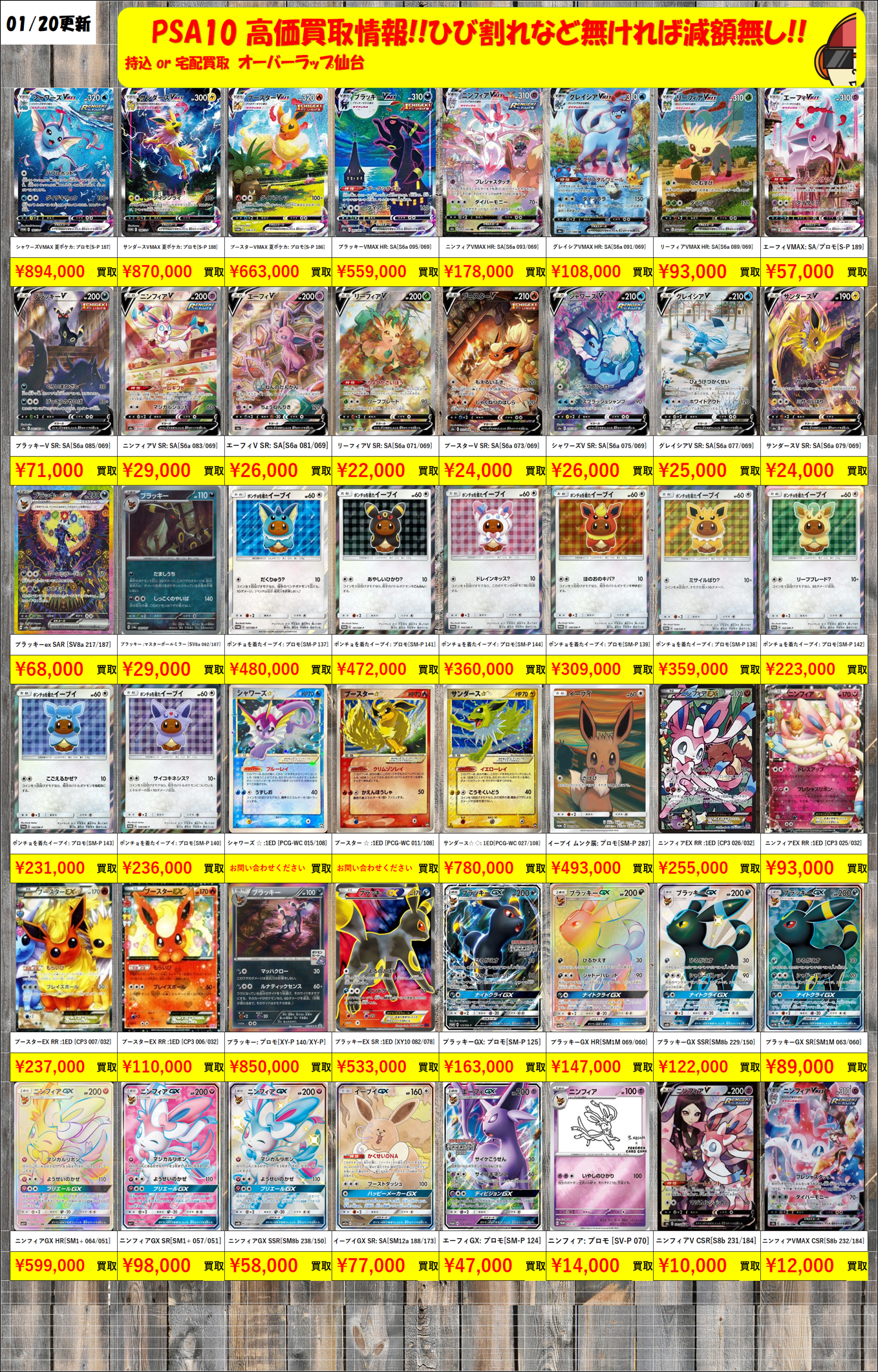 【PSA10】 イーブイ系統 ブイズ 買取価格表