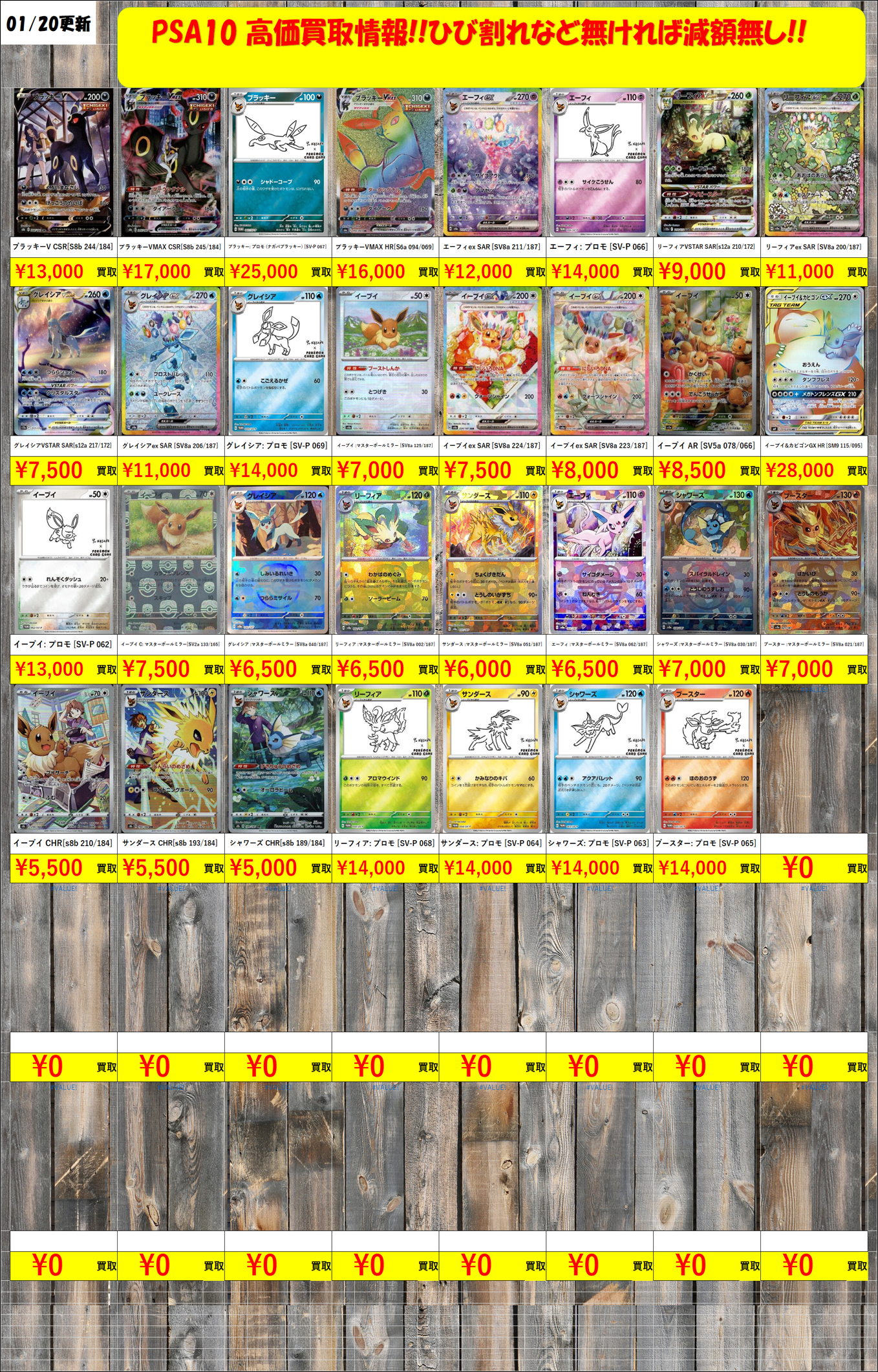 PSA10/素体カード レアリティ最低価格保証