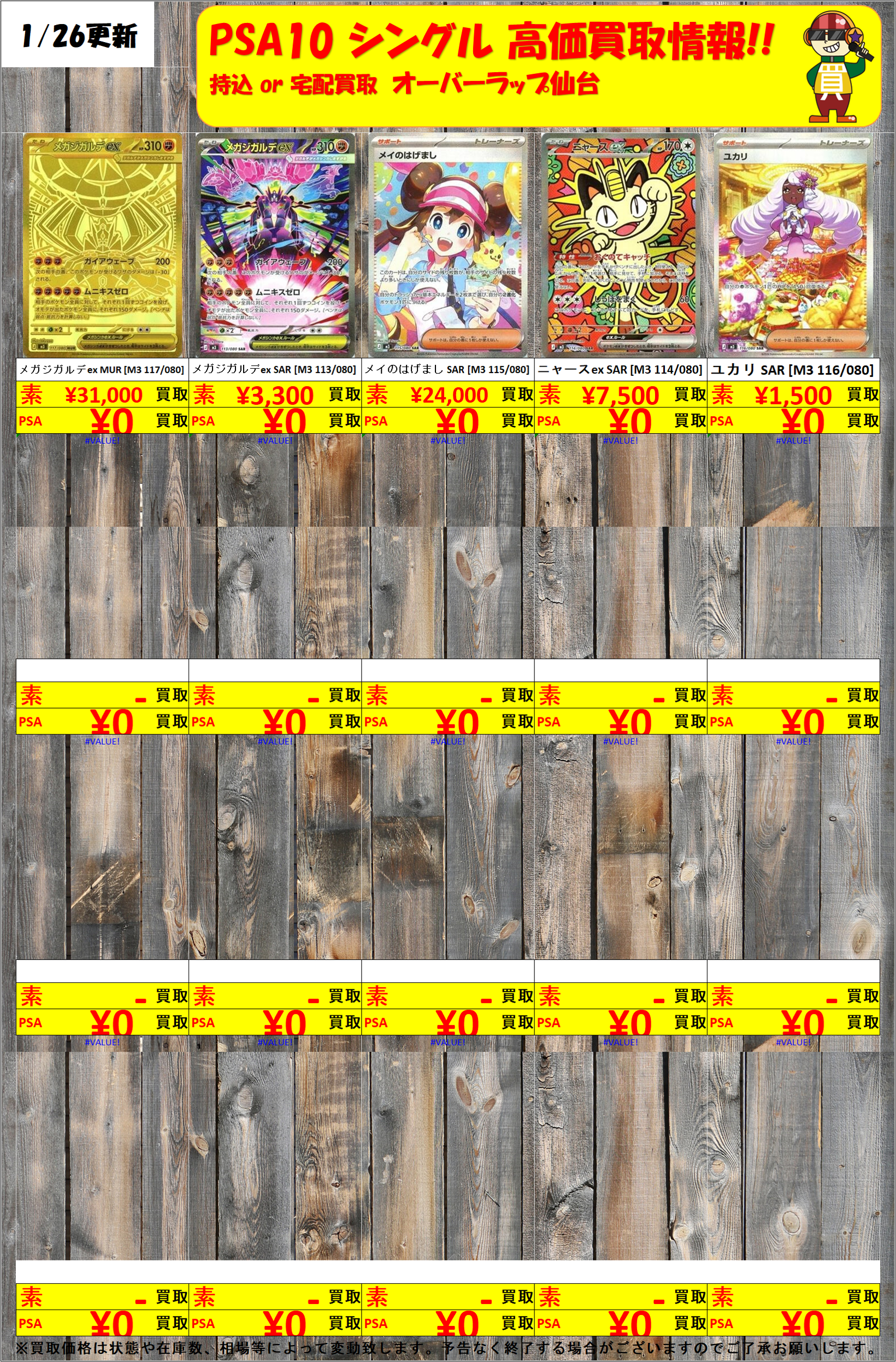 ※素体カードにつきましては、著しく状態に不備がある場合を除き減額はございません。